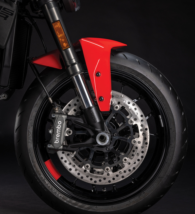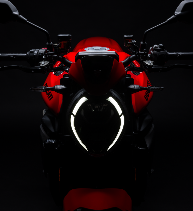 Przednia lampa, która w projektach motocykli stanowi jego „twarz”, jest w pełni diodowa, o nowoczesnym wyglądzie nawiązującym do różnych elementów stylistycznych gamy Ducati. Kształt podwójnego „C” to w istocie optyczny symbol łączący motocykle typu naked Ducati, który jest tu jeszcze bardziej wyrazisty.