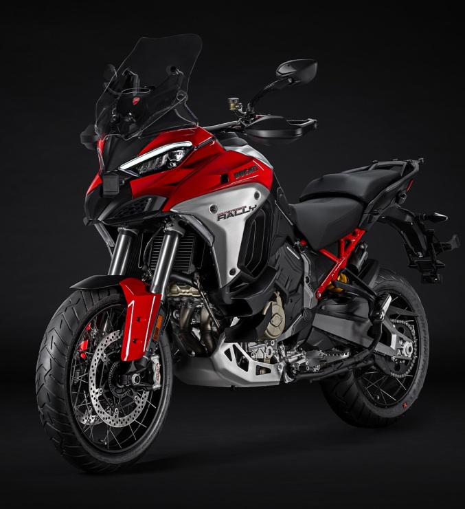 Nowa Multistrada V4 Rally jest dostępna w trzech wersjach wyposażenia: Radar (z adaptacyjnym tempomatem, systemem wykrywania martwego pola i systemem ostrzegania przed kolizją czołową), Adventure Travel & Radar (z aluminiowymi kuframi bocznymi oraz podgrzewanymi siedzeniami kierowcy i pasażera) oraz Full Adventure (z homologowanym tłumikiem Akrapovič i przednim błotnikiem z włókna węglowego).