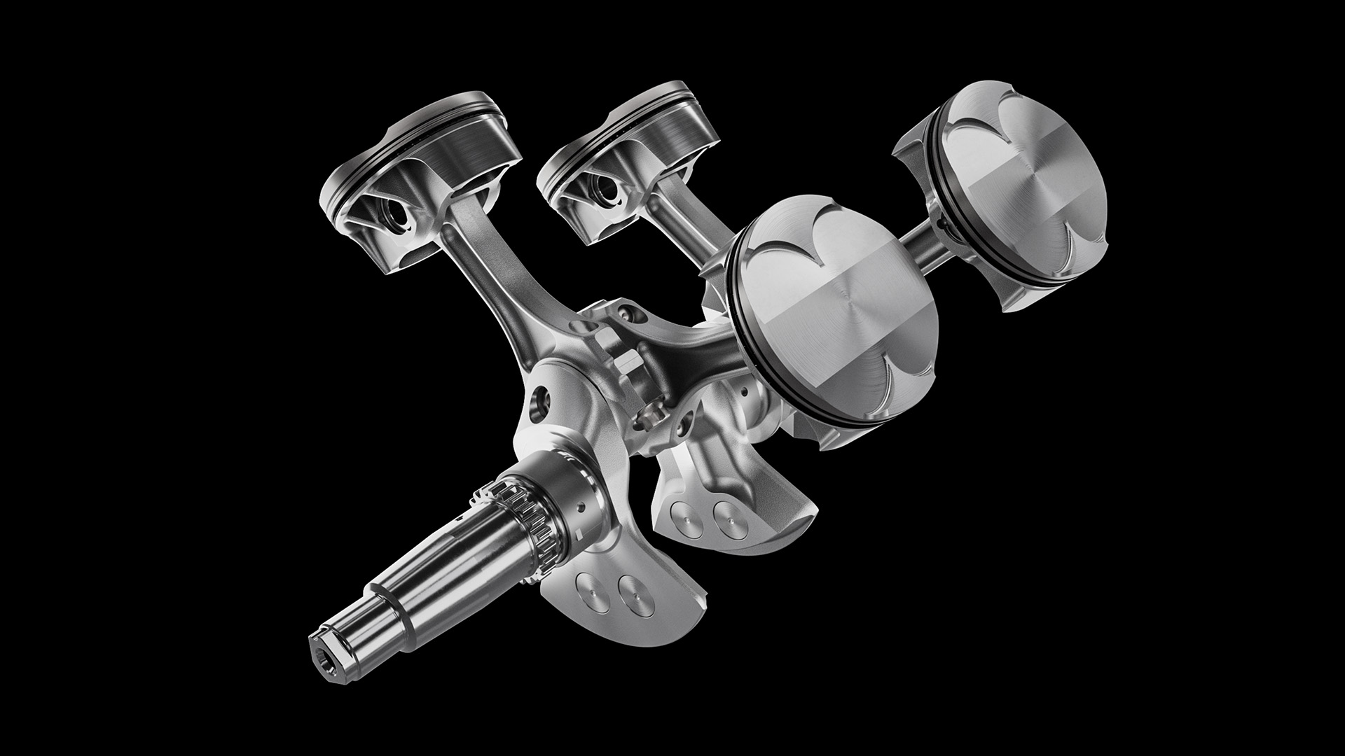 Wał korbowy został odelżony poprzez znaczne zmniejszenie stalowych przeciwwag i zastosowanie wkładów wolframowych. Pozwala to uzyskać ten sam efekt równoważący przy użyciu mniejszych, bardziej kompaktowych elementów, szczególnie w najbardziej zewnętrznych obszarach wału. Rezultatem tych zabiegów jest jeszcze szybsze osiąganie obrotów przez silnik i niemal natychmiastowa reakcja na otwarcie przepustnicy. Jednocześnie zmniejsza to obciążenie łożysk i elementów mechanicznych.