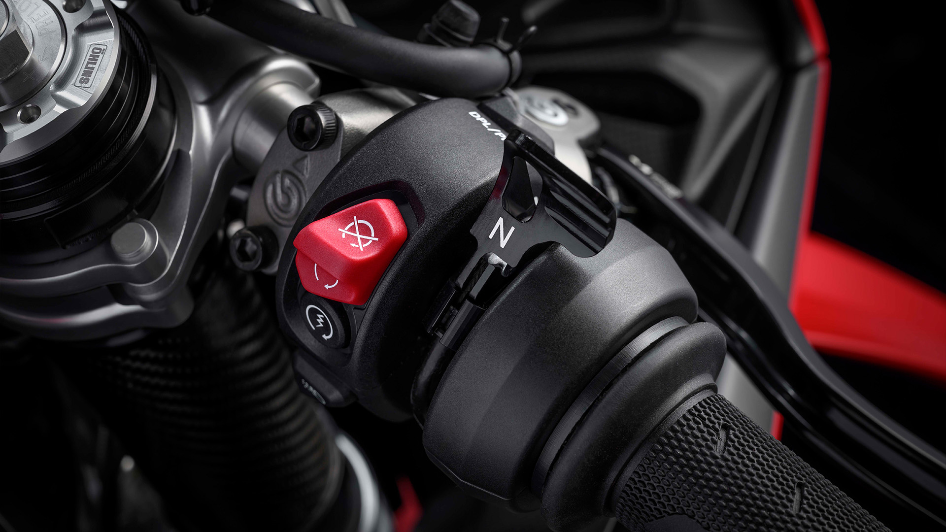 Ducati Traction Control (DTC) DVO, Ducati Wheelie Control (DWC) DVO, Ducati Slide Control (DSC) oraz Ducati Power Launch (DPL) DVO zapewniają większą precyzję dzięki nowym algorytmom. System Cornering ABS obejmuje, oprócz strategii RaceBrake Control i Road eCBS, nową funkcję Engine Brake Control DVO z Dynamic Engine Brake (DEB). System automatycznie dostosowuje siłę hamowania silnikiem poprzez jednoczesne uruchomienie hamulca tylnego, optymalizując przyczepność w zależności od obciążenia tylnego koła. Ponadto system DEB poprawia skuteczność hamowania podczas wchodzenia w zakręt, uruchamiając hamulec tylny nawet po zwolnieniu hamulca przedniego – tak jak robią to zawodnicy wyścigowi. Dzięki temu nawet mniej doświadczeni kierowcy mogą pokonywać zakręty po bardziej ciasnej linii, co zwiększa pewność siebie podczas jazdy.