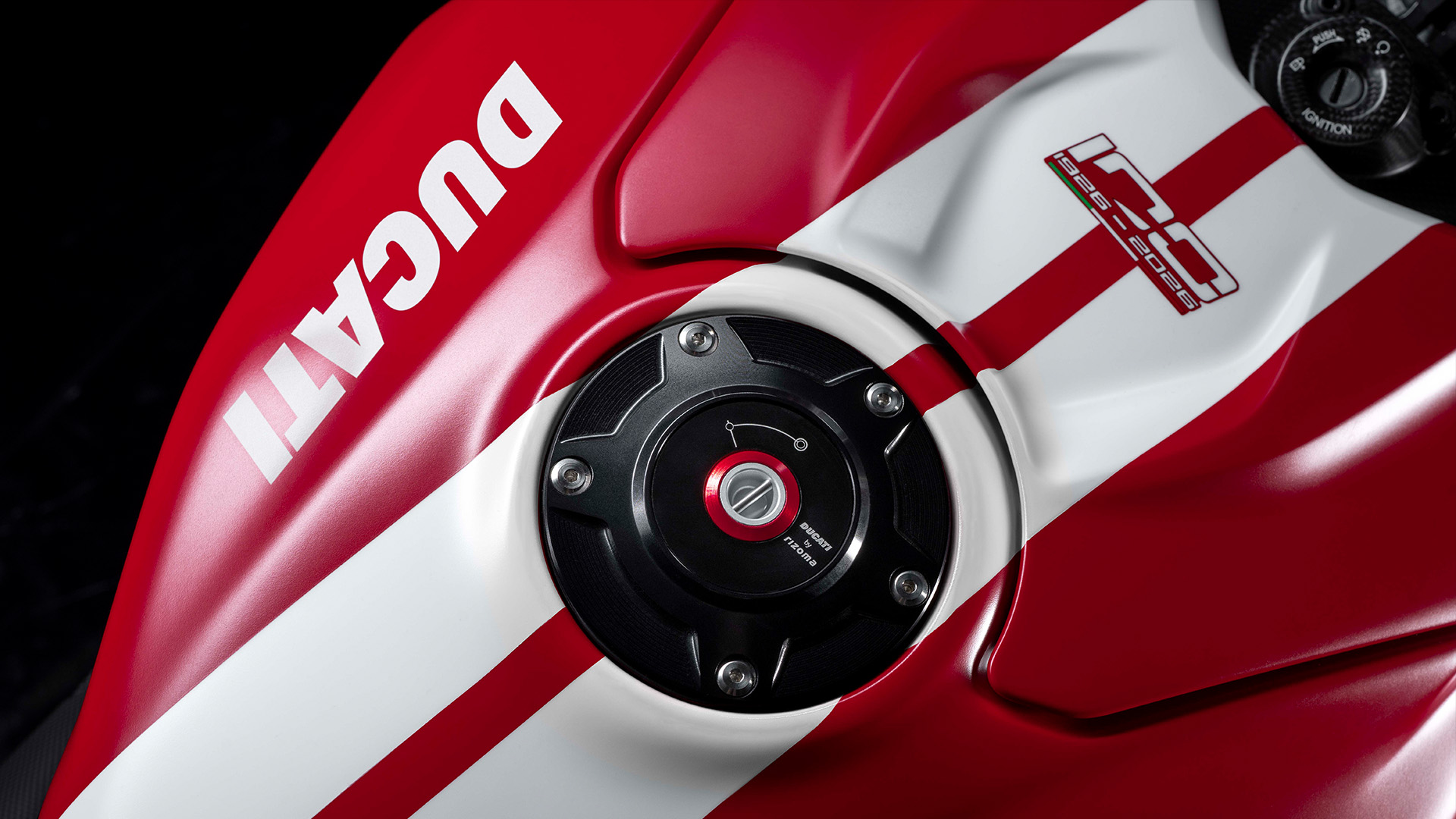 Malowanie GP26 Rosso Centenario opiera się na połączeniu kultowych białych pasów Ducati z matowym odcieniem czerwieni Rosso Centenario. Ciemna czerwień nawiązuje do początków Ducati: od modelu Ducati 60 z 1949 roku, który zapoczątkował obecność Ducati wśród producentów motocykli, po czerwień modelu Gran Sport „Marianna” z 1955 roku, pierwszego Ducati zaprojektowanego do wyścigów, sygnowanego przez inżyniera Fabio Taglioniego. To właśnie barwy GP26 modelu Superleggera V4 Centenario stały się inspiracją dla oficjalnych motocykli Desmosedici zespołu Ducati Lenovo Team.