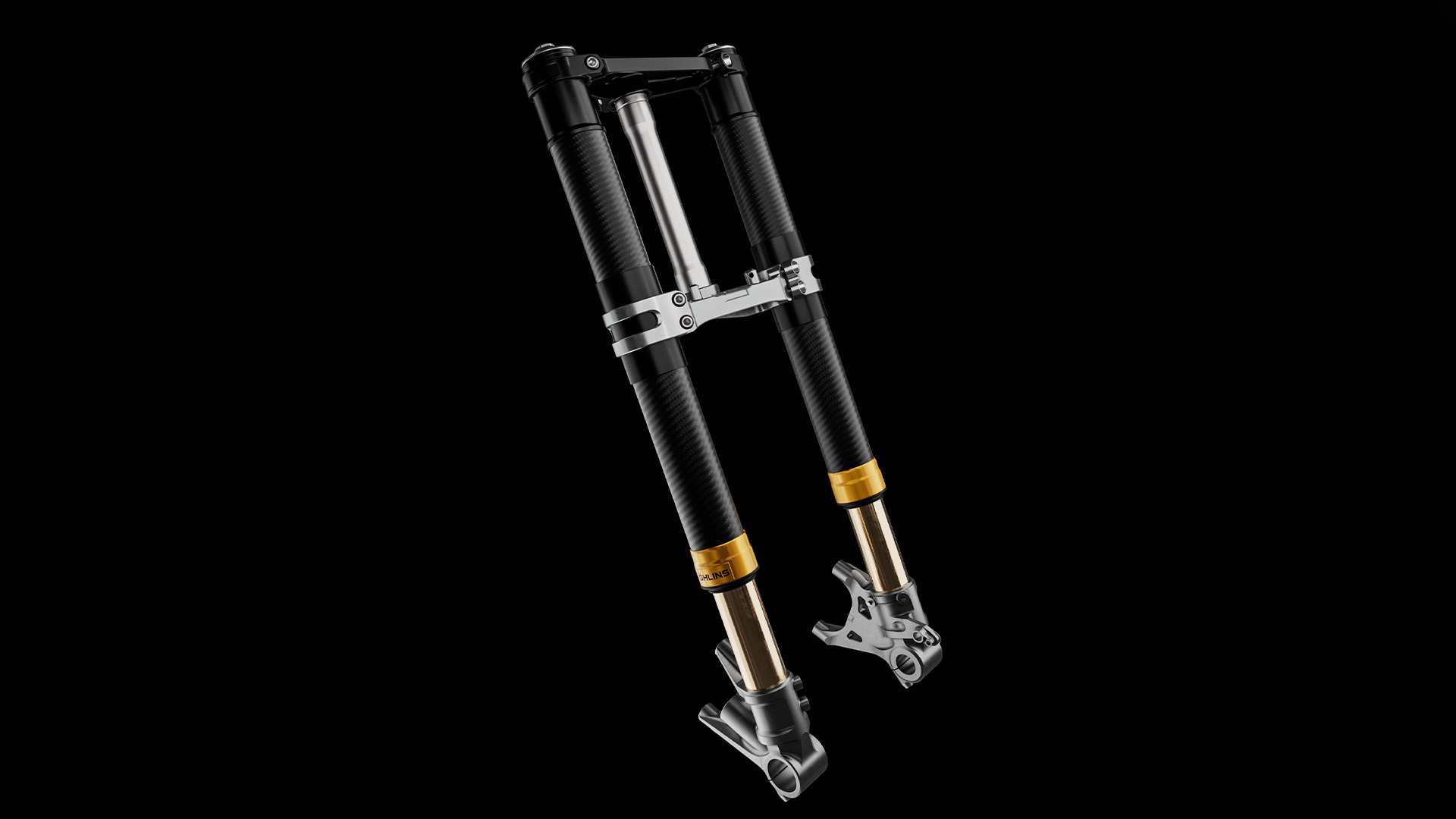 Zawieszenie również jest nowością na skalę światową. Superleggera V4 Centenario to pierwszy motocykl z homologacją drogową wyposażony w widelec z kartridżem ciśnieniowym Öhlins NPX 25/30 Carbon z goleniami wykonanymi z włókna węglowego, co pozwala na osiągnięcie maksymalnej oszczędności masy w porównaniu z produkcją konwencjonalną. Oszczędność masy względem Panigale V4 R wynosi 8%, a 10% w porównaniu ze standardowym Panigale V4, co przekłada się na odczuwalną poprawę zwrotności.