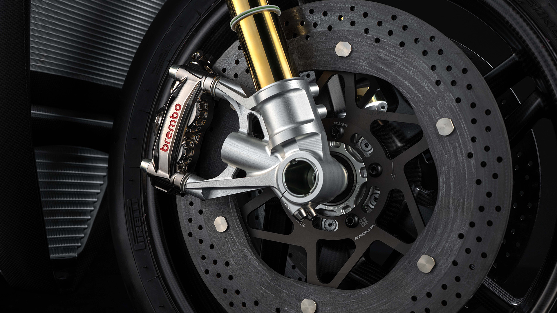 W porównaniu z tarczą stalową, nowe karbonowo-ceramiczne tarcze oferują taką samą skuteczność hamowania, przy mniejszej o 450 gramów masie na tarczę i o 40% mniejszym momencie bezwładności. Poprawia to zwinność motocykla, sprawiając, że wchodzenie w zakręty jest jeszcze bardziej naturalne i precyzyjne.