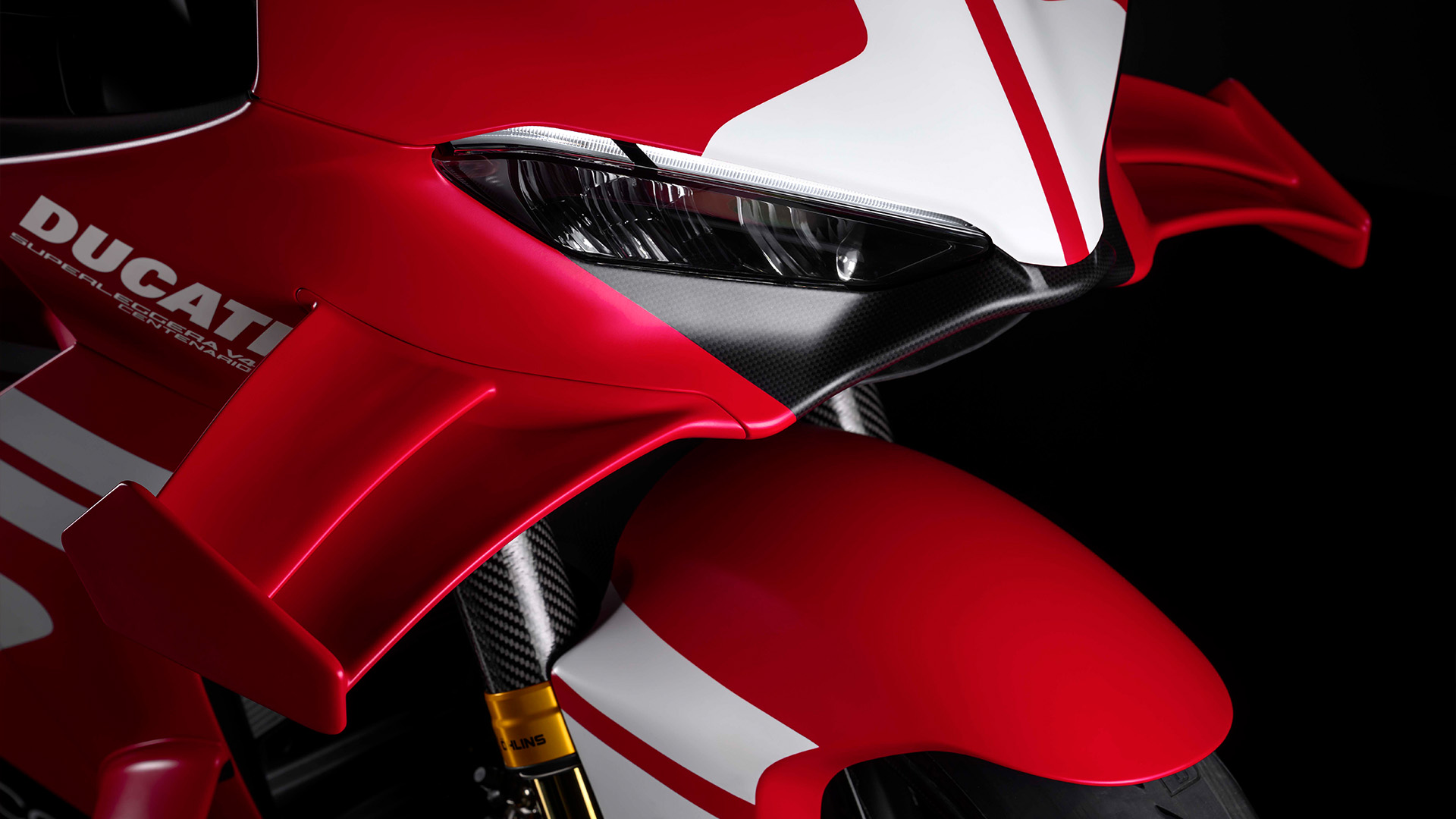 W modelu Superleggera V4 Centenario estetyka i aerodynamika łączą się w jedną całość. Wysoce wydajne skrzydła i boczne dyfuzory (Corner Sidepods), zaprojektowane w celu generowania siły docisku przy dużych kątach pochylenia, pochodzą bezpośrednio z Panigale V4 R. Wprowadzone przez Ducati w MotoGP w 2021 roku rozwiązanie Corner Sidepods generuje docisk w środkowej fazie zakrętu, zapewniając wyższy poziom przyczepności opon, a tym samym umożliwiając osiąganie wyższych prędkości i skrócenie czasów okrążeń.