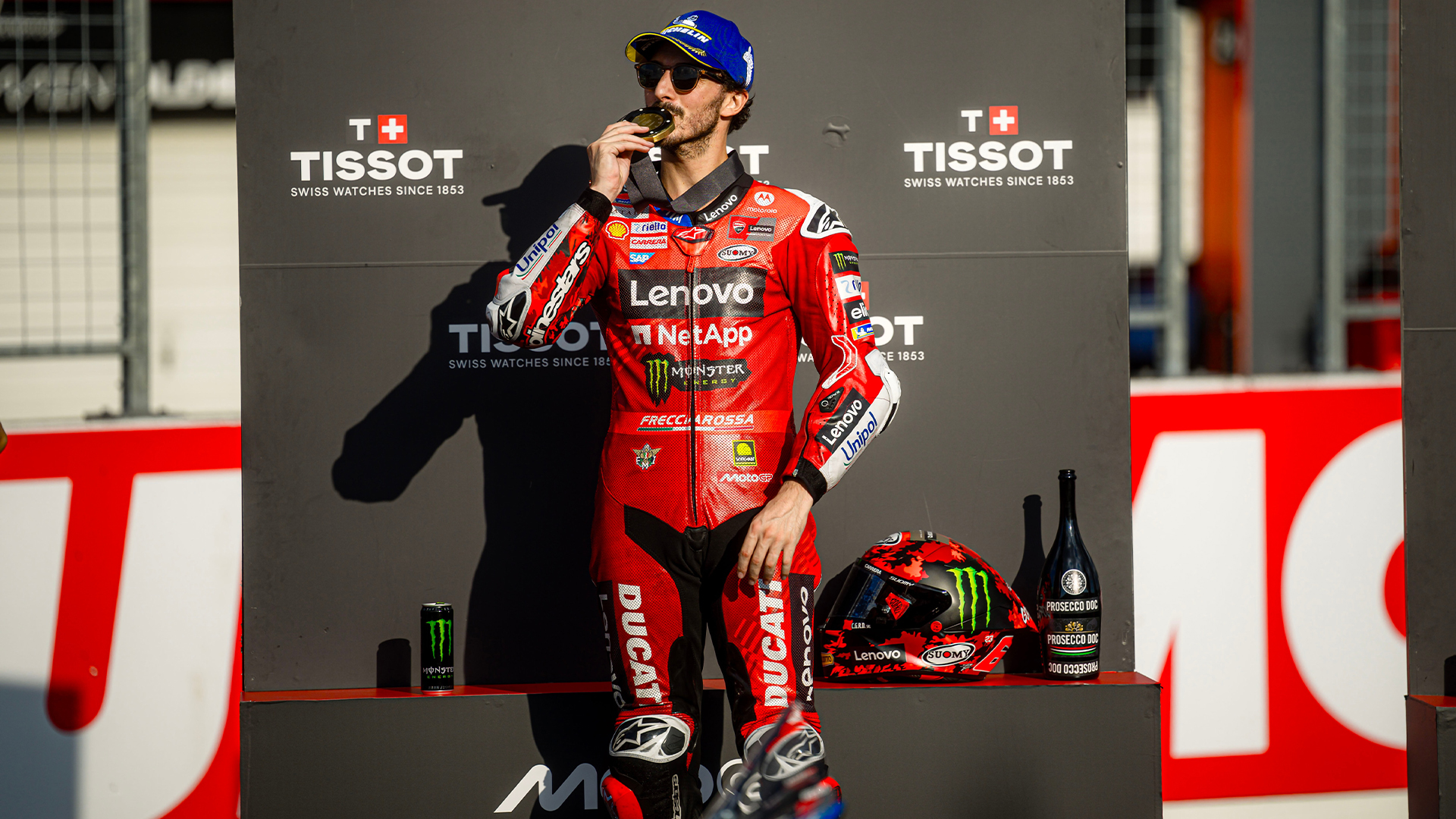 Zdobyty właśnie tytuł Mistrza Świata Zawodników uzupełnia tytuł Mistrza Konstruktorów zdobyty w Barcelonie, szósty z rzędu dla producenta z Borgo Panigale. To bezprecedensowa seria w historii MotoGP, która po raz kolejny pokazuje siłę projektu zbudowanego na talencie, pasji i doskonałości "Made in Italy".