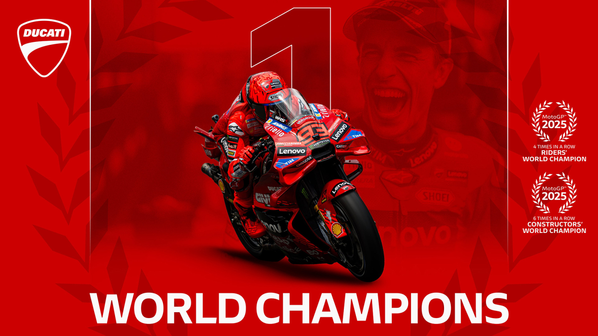 Dla Marca Márqueza to pierwsze Mistrzostwo Świata w czerwonych barwach Ducati, a dla producenta z Borgo Panigale czwarty z rzędu tytuł Mistrza Świata, zdobyty z trzema różnymi zawodnikami (2022, 2023: Francesco Bagnaia, 2024: Jorge Martín, 2025: Marc Márquez). Ten bezprecedensowy wynik podkreśla solidność projektu technicznego i sportowego, zdolnego do adaptacji, ewolucji i wygrywania z różnymi zawodnikami, a Desmosedici GP konsekwentnie przoduje na arenie światowej.