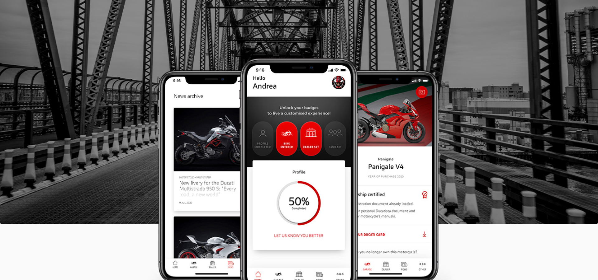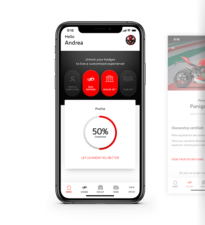 Utwórz swój profil i upewnij się, czy Twoje informacje są kompletne i aktualne, aby w pełni wykorzystać aplikację MyDucati. Im więcej się o Tobie dowiemy, tym lepsze doświadczenia możemy Ci zaoferować. Zarządzaj ustawieniami prywatności i dostosuj swoje preferencje, abyśmy mogli zaangażować Cię we wszystkie inicjatywy, które Cię interesują.