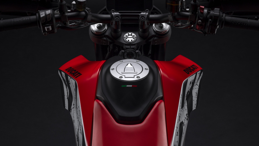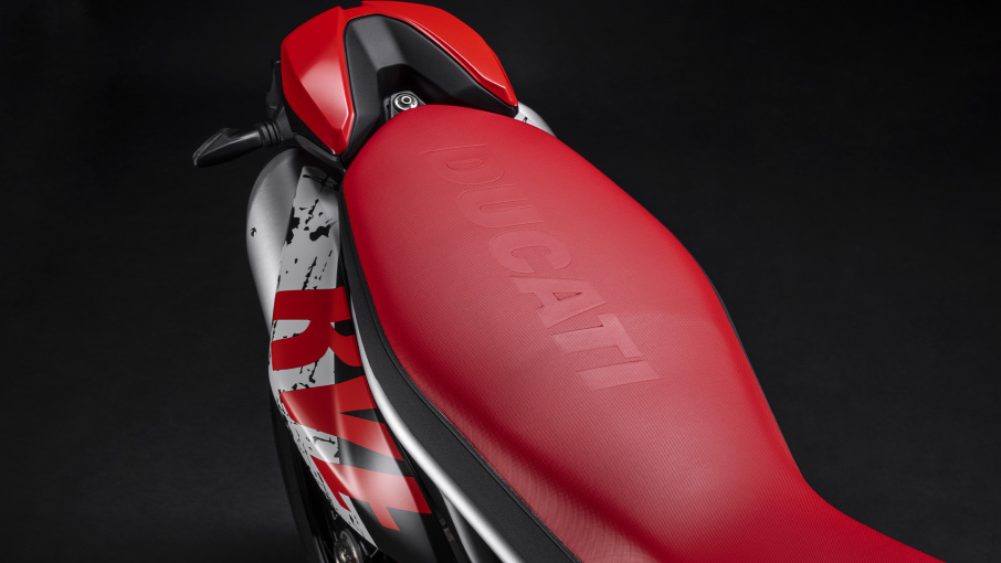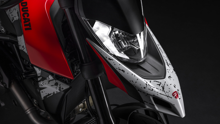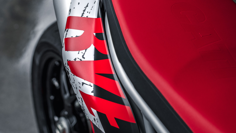 Malowanie w nowym Hypermotardzie 950 RVE podkreśla lekkość i agresję motocykla dzięki rzucającemu się w oczy wzorowi. Inspiracja czerpana była ze sztuki miejskiego graffiti.