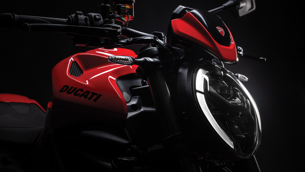 Przednia lampa, która w projektach motocykli stanowi jego „twarz”, jest w pełni diodowa, o nowoczesnym wyglądzie nawiązującym do różnych elementów stylistycznych gamy Ducati. Kształt podwójnego „C” to w istocie optyczny symbol łączący motocykle typu naked Ducati, który jest tu jeszcze bardziej wyrazisty.