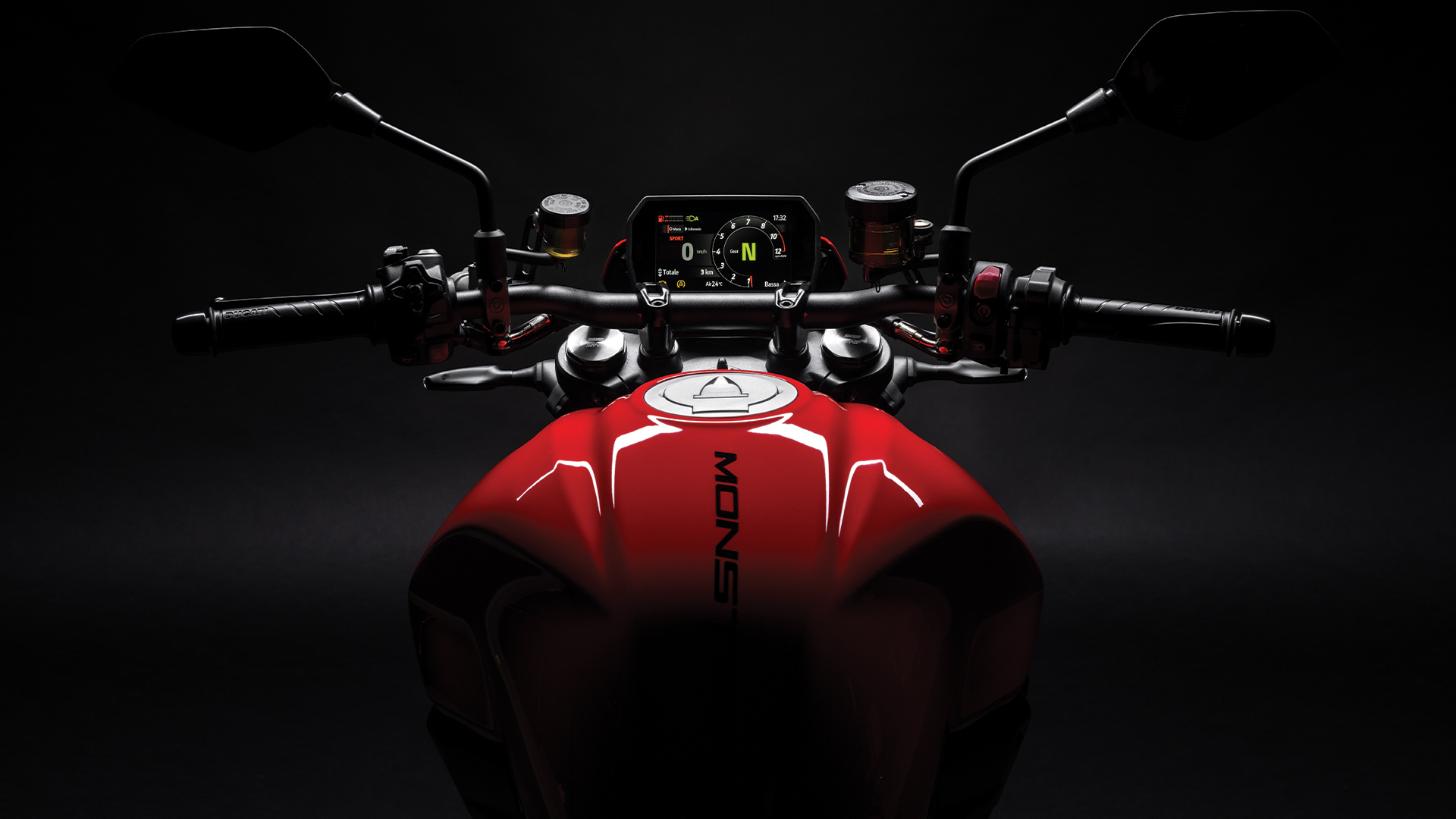 Nowy Monster został zaprojektowany od podstaw, łącząc lekkość i technologię z niepowtarzalną estetyką. Utrzymał styl pierwszego Monstera w nowoczesnym wydaniu. Bardziej opływowy, sportowy i kompaktowy, nowy Monster urzeka, przywracając cechy stylistyczne, które zawsze wyróżniały go spośród innych naked’ów: charakterystyczny reflektor, zbiornik paliwa, jednoczęściowe siedzenie i krótki, lekki tył.
