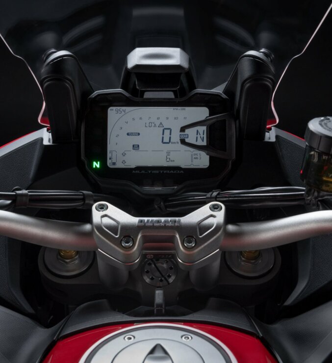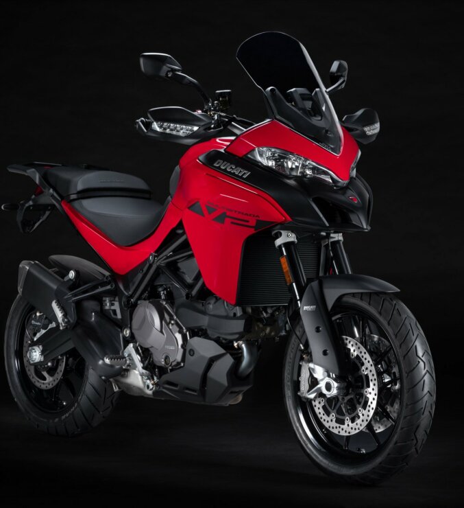 Multistrada V2 występuje w klasycznym malowaniu "Ducati Red" z czarnymi felgami.