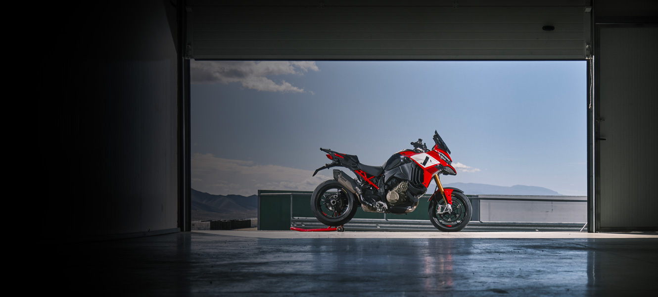Prace nad nowym projektem rozpoczęły się od połączenia stylistyki charakterystycznej dla Multistrady V4 z dwoma elementami, które identyfikują wersję Pikes Peak z estetycznego i funkcjonalnego punktu widzenia, a mianowicie 17-calowym przednim kołem i charakterystycznym dla Ducati wahaczem jednostronnym. Wyścigową duszę motocykla podkreśla dedykowane malowanie, które inspirowane jest kolorystyką i grafiką Desmosedici GP '21.