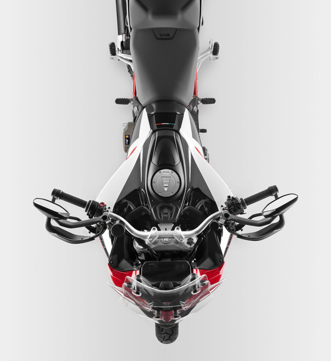 Projekt Multistrady V4 S Sport cechuje się niezwykłą funkcjonalnością. Jest solidny i wytrzymały, a jednocześnie wyrafinowany i niezwykle estetyczny. Projektanci Ducati wypracowali dobre proporcje i kompaktowość nadwozia w rozstawie osi - idealne połączenie formy i funkcji. Da się to zauważyć w muskularnych gabarytach przedniej części nadwozia z 22-litrowym zbiornikiem paliwa, w połączeniu ze smukłym tyłem, który umożliwia optymalną pozycję nawet podczas jazdy na stojąco na odcinkach terenowych.