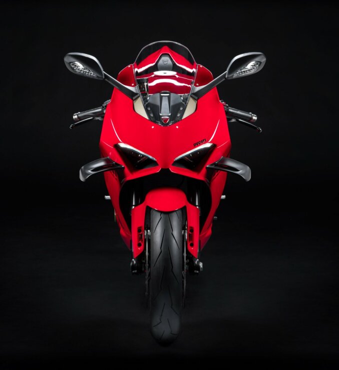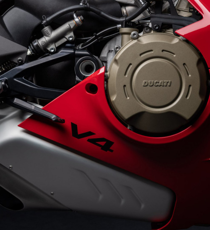 Wygląd nowego Panigale V4 został odświeżony i zyskał jeszcze więcej agresywnego sznytu. Bezprecedensowy projekt graficzny Ducati Centro Stile obejmuje czarny kolor logotypów naniesionych na czerwone owiewki, a także dwukolorową kanapę.