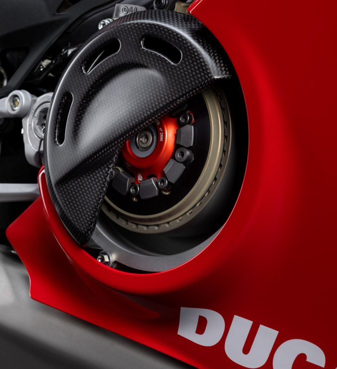 Aby osiągnąć maksymalną wydajność podczas wyścigów, Panigale V4 R zostało wyposażone w dynamiczny przedni wlot powietrza, opracowany we współpracy z Ducati Corse, który zwiększa ilość powietrza zasysanego do silnika, a tym samym podnosi moc (+1,3 KM), znacznie poprawiając osiągi na prostych.