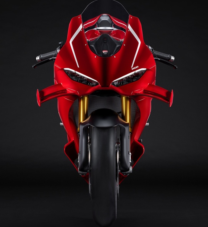 Owiewki w modelu Panigale V4 są bardziej aerodynamiczne i zwiększają zwinność motocykla podczas zmiany kierunku, a nowe spoilery generują lepszy docisk. Obciążenie aerodynamiczne wzrosło o 25%, co przekłada się na wzrost siły docisku o 4,8 kg przy prędkości 270 km/h i 6 kg przy 300 km/h. Efektem jest znaczna poprawa stabilności podczas przyspieszania i precyzji przy dużych prędkościach.