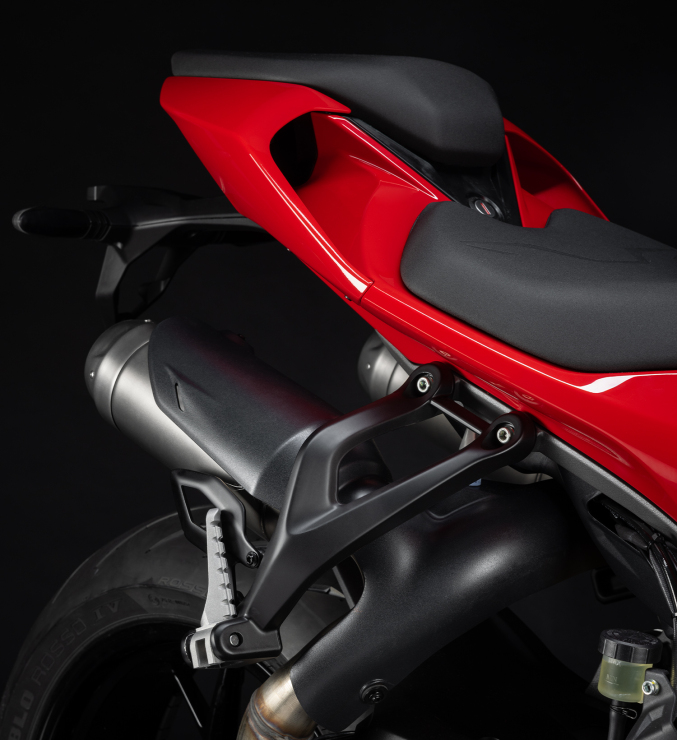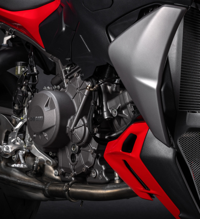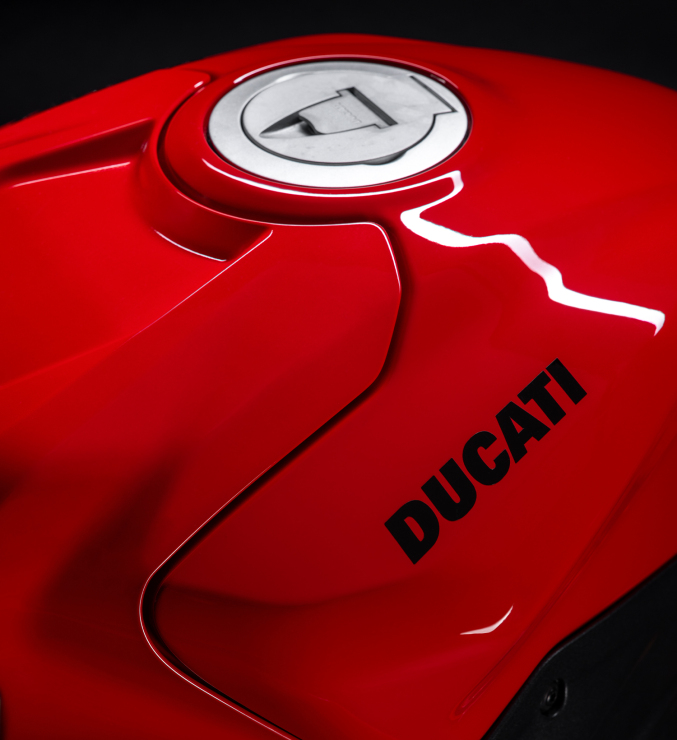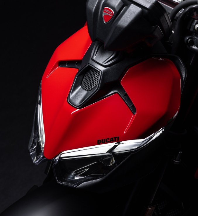 Konstrukcja nowego V2 potwierdza typowe cechy stylistyczne rodziny Streetfighter poprzez brak przedniej owiewki i przede wszystkim wykorzystanie podwozia ze sportowego modelu. Ostry wygląd przedniej części motocykla podkreśla charakterystyczny kształt reflektora Full-LED wyposażonego w DRL. Zbiornik paliwa, ogon i wykonane z lekkich stopów obręcze kół są takie same jak w Panigale V2. Wykorzystanie tych rozwiązań wzmacnia sportowego ducha, zachowując jednocześnie odniesienia do wyścigowej tradycji Ducati.